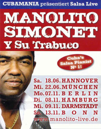 Der in Camagüey (Kuba) geborene Pianist, Komponist und Arrangeur Manolito Simonet gründete 1993 die Formation Manolito Y Su Trabuco nachdem er zuvor 6 Jahre der Band Maravilla de Florida als musikalischer Leiter und Pianist angehört hat. Der Grossteil der Band folgte ihm. Trotzdem besteht auch Maravilla de Florida noch heute und ist sehr erfolgreich. Manolito Y Su Trabuco ist von der Besetzung her eine der grössten Timba-Bands. Ca. 13 Instrumente dazu bis zu 3 Sänger. Seit 1993 wurden 10 Alben produziert. Die grössten Hits sind zweifelsohne Locos Por Mi Habana und Marcando La Distancia. Aber auch Kollegen wie z.B. Victor Manuelle haben grossen Erfolg mit Cover-Versionen von Manolito-Songs ( El Aguila ). Jüngstes Beispiel einer erfolgreichen Manolito-Komposition ist das Spanish Harlem Orchestra! Sie haben auf der ihrer aktuellen CD ebenfalls einen Manolito-Song nachgespielt (La Raspadura).